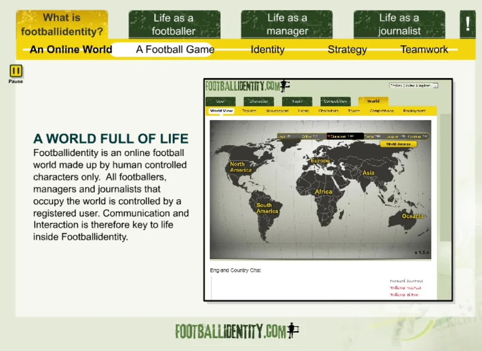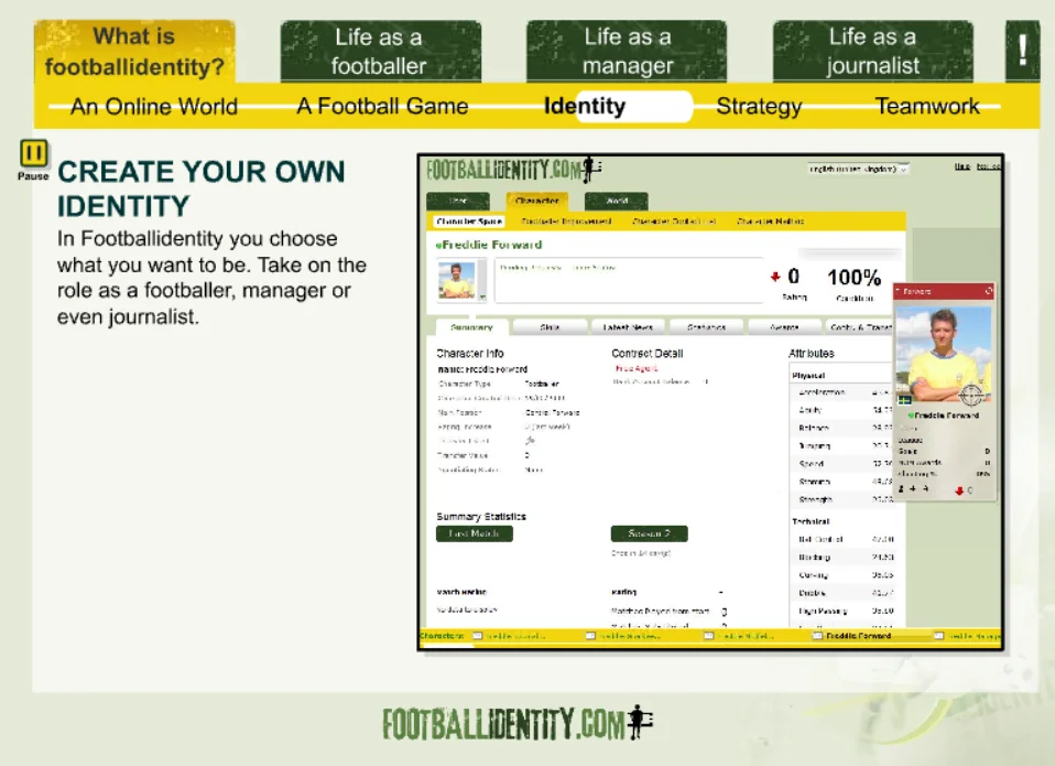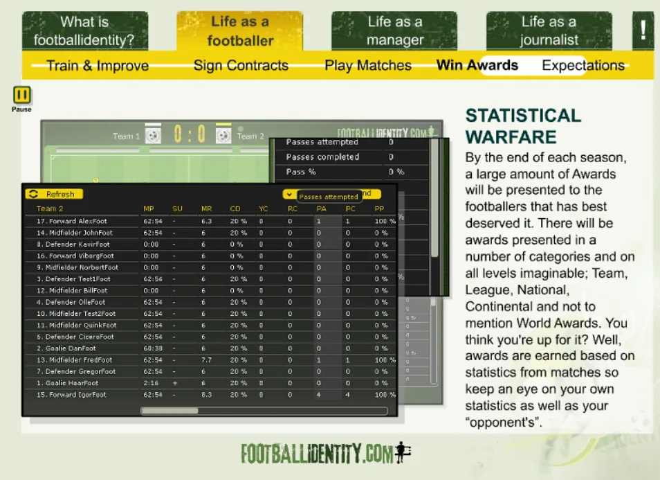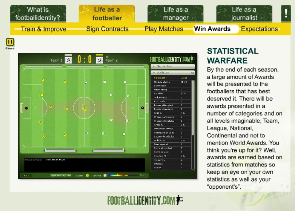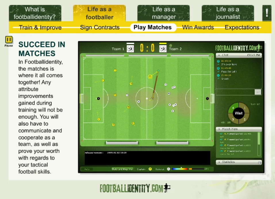 Footballidentity was a browser-based football MMO that allowed players to create their own footballer and live an entire career — from local pitches to packed stadiums.