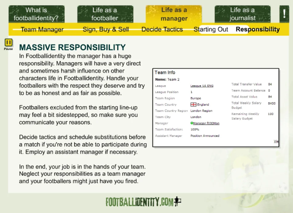 Footballidentity was more than just a football game – it was a living online world built around players, clubs, and community.
